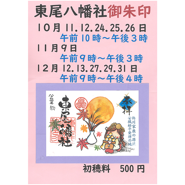 祭礼の日(月1回) 日程は東尾町内会(0566-76-2881)へお問い合わせください。